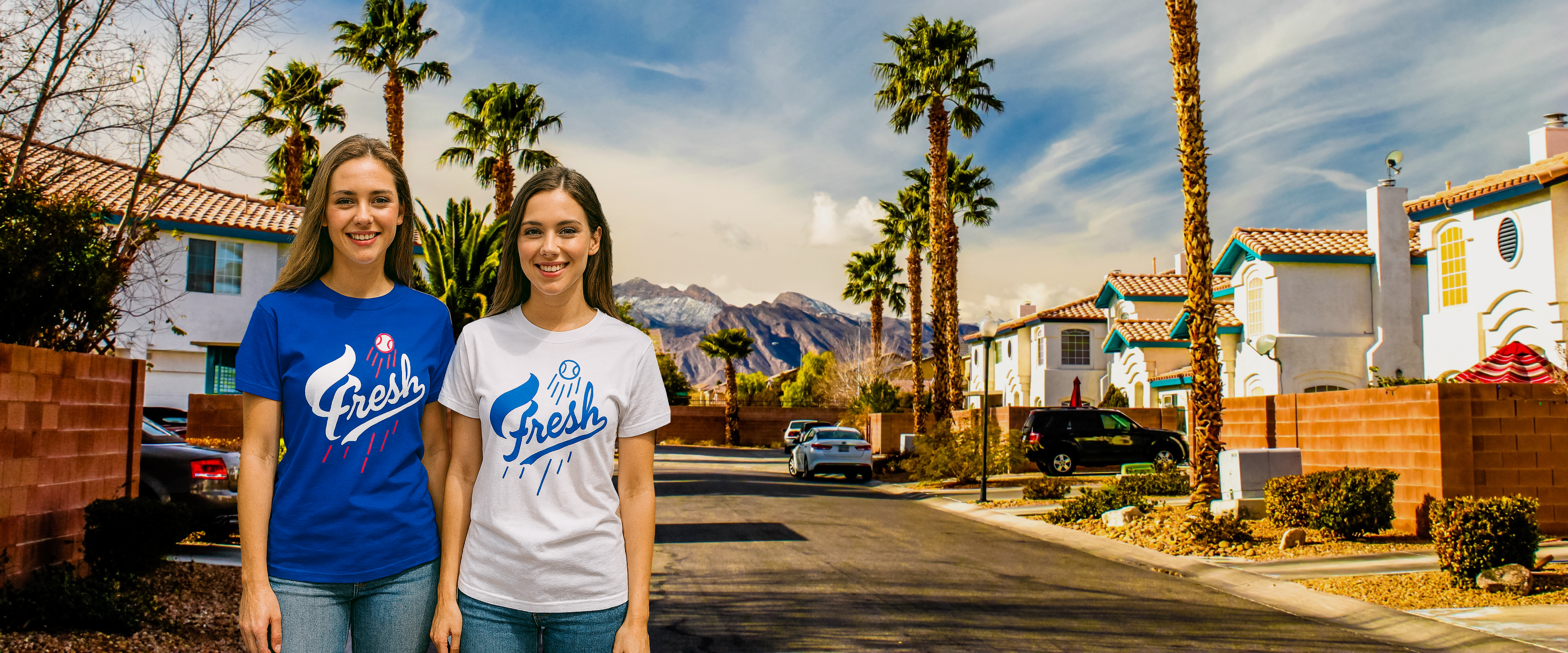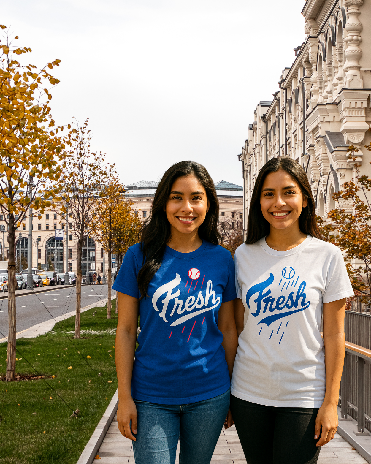 Born in the roar of Dodger Stadium and designed for LA's bustling streets, our tee is your ticket to authentic LA style. The vibrant blue pops, the "Fresh" script shouts confidence, and the premium cotton keeps you comfortable wherever you roam.