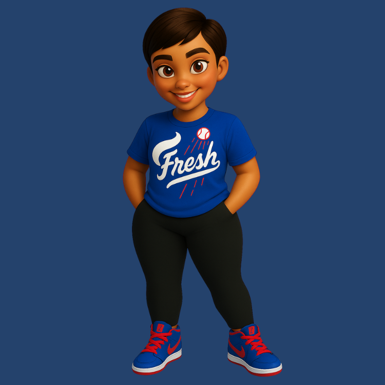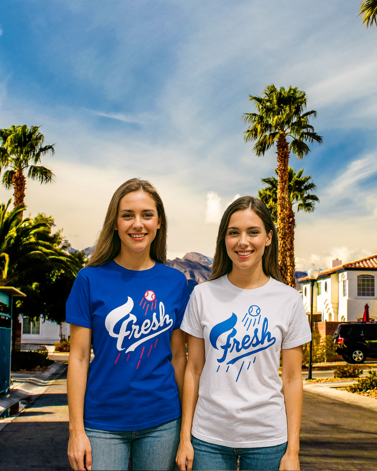 Born in the roar of Dodger Stadium and designed for LA's bustling streets, our tee is your ticket to authentic LA style. The vibrant blue pops, the "Fresh" script shouts confidence, and the premium cotton keeps you comfortable wherever you roam.
